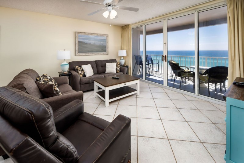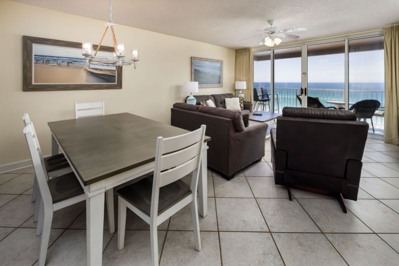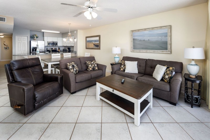 3 bedroom , 3 bathroom charming beachfront condo spacious enough for the whole family! This top floor unit provides the best views of the beautiful Gulf of Mexico which can be viewed on the private balcony. This limitless 3 bedroom sleeps up to 8 people with a king bed in the master bedroom, a queen bed in one guest room, 2 twin beds in the other guest room, and a queen sleeper sofa bed in the living room. The kitchen offers breakfast bar seating with a dining room table right beside it where you can sit and enjoy the views of the water or the flat screen TV in the living room. This rental includes access to a gulf front pool and hot tub, exercise room, outdoor grills and easy access to the beach via a private boardwalk where you can enjoy free beach service, including 2 beach chairs and an umbrella from March-October.