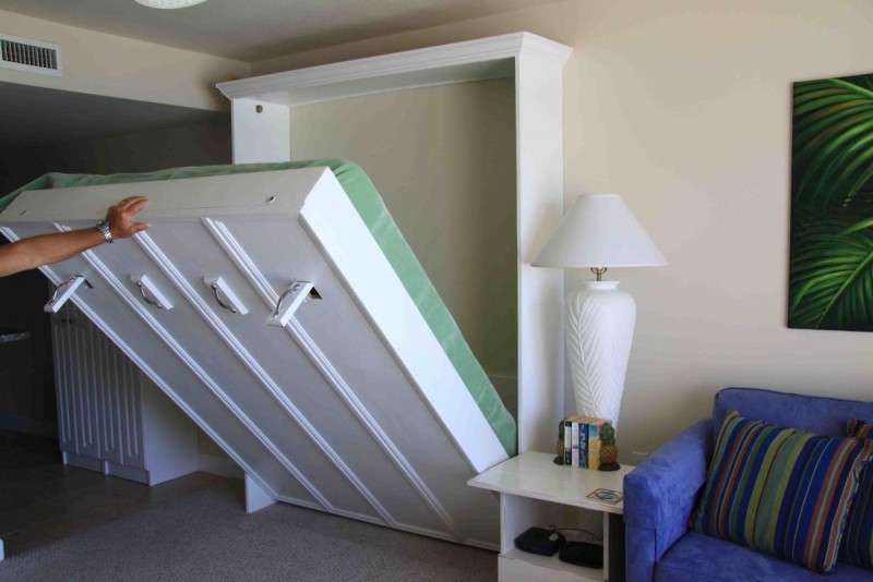 The sleeping arrangements in this unit are as follows: master bedroom - 1 king bed. Bunk beds in the hallway. A MURPHY Bed in the living room. This unit sleeps 6.