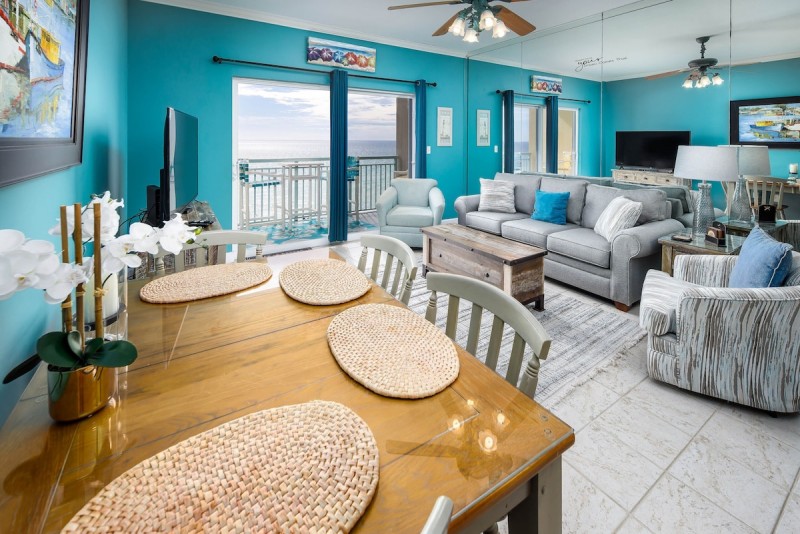 FREE PARKING AND FREE WIFI!!! Everything in this condo from the gorgeous coastal paint throughout, to the crown molding lining all the ceilings, makes this condo seriously a gem to vacation goers! It has all the comforts of home this 2 bedroom make it worth renting for everyone!! Granite kitchen counter tops make meal prepping fun and clean. While the individual TV's in each of the bunks makes bed time fun for the kids! Tall balcony furniture not only provides amazing views for everyone, but it's also comfortable for watching sunrises and sunsets. This penthouse top-floor two bedroom unit at the Pelican Isle is a vacationers dream rental, if you see it available hurry and book because it won't be empty long!!
