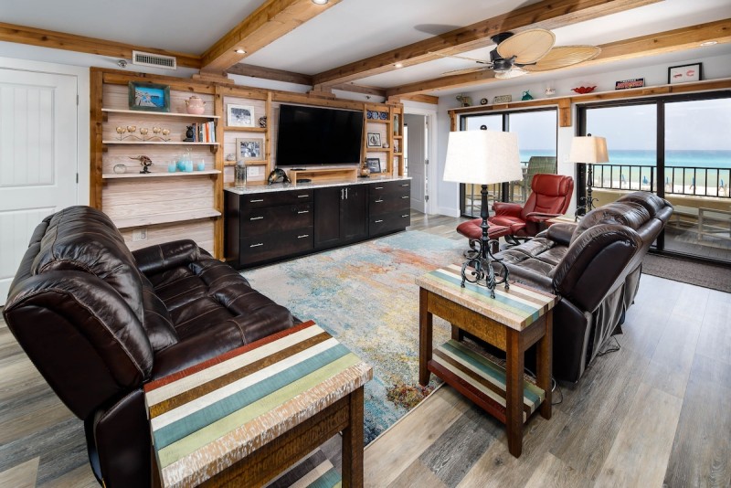 FREE PARKING AND FREE WIFI!!! Walk out onto your private balcony and watch the sunset over the Gulf of Mexico. Take a long walk along the beach and enjoy the sugar white sands and emerald green waters you can only find on the Gulf Coast. If this sounds like the kind of vacation you are looking for, then reserve Surf Dweller 202 today! As you enter this condo, you are greeted with a GORGEOUS kitchen featuring stainless steel appliances. A cozy living room and dining area leads to a private balcony overlooking Fort Walton Beach. The cozy décor makes you feel right at home and exposed ceiling beams give it a rustic touch. Surf Dweller 202 offers two bedrooms and two full bathrooms. Comfortably accommodate up to six guests with a king in the master bedroom and two queens in the guest bedroom. The bedrooms are both comfortable and spacious. Bring your family or friends to this location and you will have unforgettable vacation. This beautiful condo has it all! From the fully stocked kitchen to breathtaking views from the living room and master bedroom. Start packing now for your home away from home!