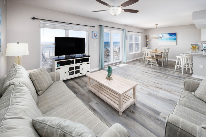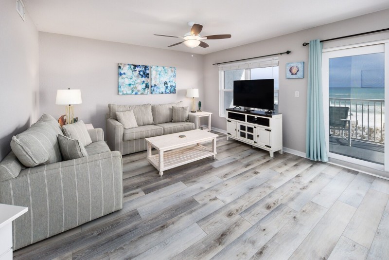 FREE PARKING AND FREE WIFI!!! Numerous updates in this two-bedroom beach front condo! Updated carpeting in the living room and bedrooms, recently updated 50” LCD HD TV in the living room, updated 40” LCD TVs in the bedrooms, along with an updated dishwasher in the kitchen. Cute, simplistic decor throughout this comfortable unit makes it perfect for families and couples looking for a peaceful getaway!! The master bedroom offers a king size bed; the guest bedroom has 2 full size beds and there’s even a sleeper sofa, thus accommodating up to 6 people comfortably in this unit. And don’t forget to check out the new comfortable patio furniture - perfect for enjoying that morning cup of coffee or while relaxing with a glass of wine while watching the fantastic sunsets on Okaloosa Island!! This unit now offers FREE Secured High-Speed Internet access…ideal for those who can work remotely or for streaming your favorite online movies! The best part is, when you are ready to go to the beach, you simply walk down the stairs or take the elevator, and you're there!