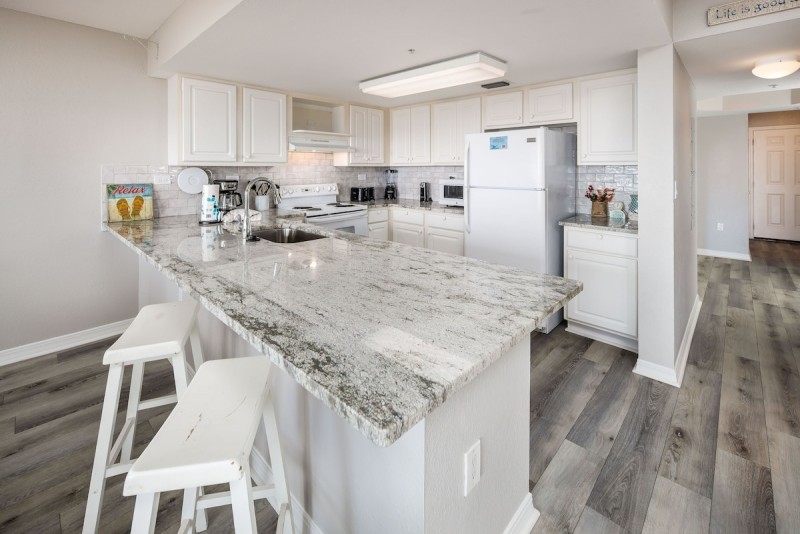 Islander Beach Resorts is located on Okaloosa Island in Fort Walton Beach. This seven-story condo is situated directly on the Gulf of Mexico. Unit 3002 is conveniently located on the third floor a quick trip to the elevator or the stairs for a quick route to the boardwalk…ultimate convenience factor! This great two-bedroom, two-bathroom condo has a family friendly floorplan with the two bedrooms welcoming each visitor at the entryway, one on either side of the unit. Each bedroom has its own private bathroom and the full-size kitchen, dining area, and family room is down the hall with super convenient access to your private Gulf-front balcony. The sliding glass balcony doors provide the quintessential backdrop to your Emerald Coast vacation getaway. The VIEWS of the Gulf of Mexico are ENDLESS and you may even see a dolphin or two if you’re lucky!!