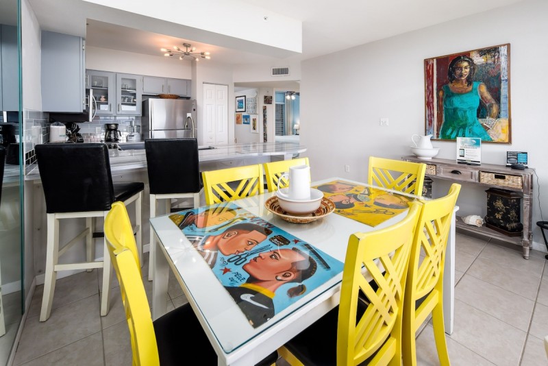 All of our two-bedroom units at Emerald Towers West feature a full kitchen with dishes and cookware, washer/dryer, private balcony, and master bedroom with gulf-front view.