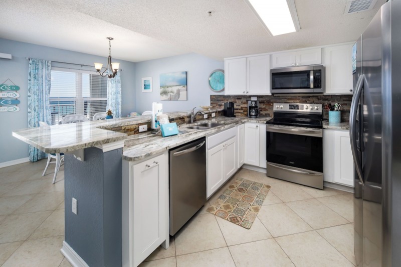 FREE PARKING AND FREE WIFI!!! Unwind from your daily stress in your beachfront vacation in this charming 2 bedroom, 2 bathroom condo. Bask in the awesome 4th floor view of the sunlight dancing on the Emerald waters of the Gulf of Mexico. This unit comfortably accommodates 6 people with 2 king size beds and 1 queen sleeper sofa. Fully furnished, fully equipped kitchen, and all tile floors make this unit unprecedented. It's a joy to cook for your entire family in the kitchen with stainless steel appliances with the Gulf view. The best part is, when you are ready to go to the beach, you simply walk down the stairs or take the elevator, and you're there!