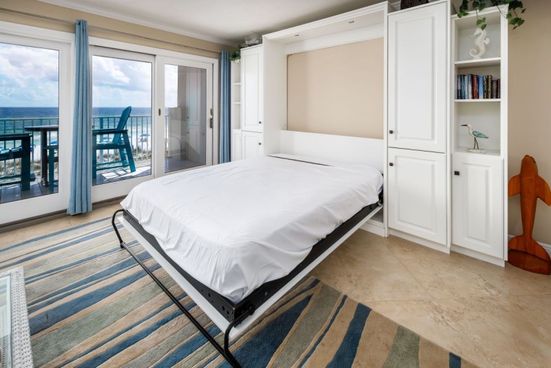 The sleeping arrangements in this unit are as follows: master bedroom - 1 king bed and a queen murphy bed in the living room.