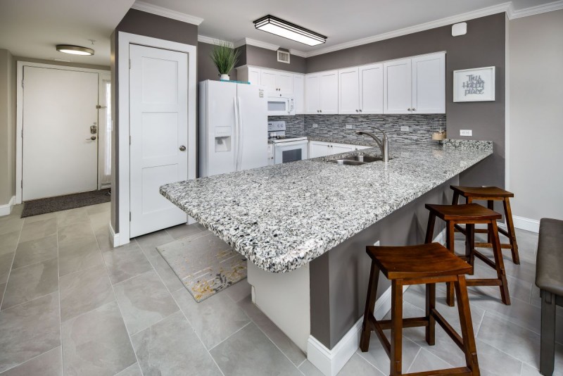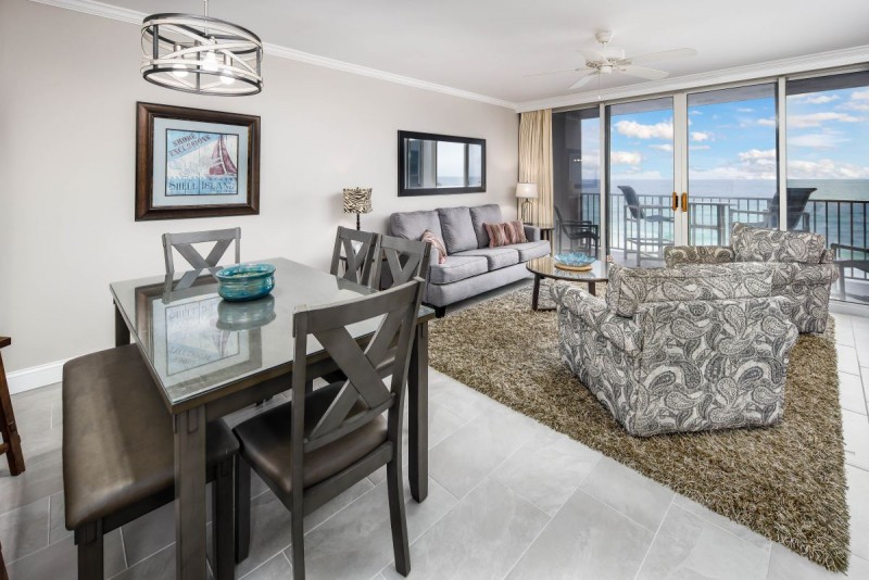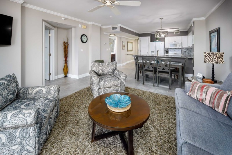FREE PARKING AND FREE WIFI!!! Beautifully remodeled April of 2023. This 2 bedroom 2 bath Gulf Front unit is meticulously appointed. Attention to details…… fresh paint, new tile floors, crown molding, cabinets and furniture throughout the unit. Well of course there are brand new king size mattresses and box springs in both bedrooms. The brand new couch has a queen size sleeper sofa. The popcorn ceilings were removed to reveal the flat ceiling with new paint! The bathrooms both were updated with new granite countertops, walk in shower in the master bathroom, new tile with built in bottle niches with a beach vibe. The small details matter and coming to the beach means you relax outside for sure…..but this unit was decorated with interior relaxation top of mind. Everything you need to have the perfect vacation like the fully equipped kitchen with granite countertops for meal preparation. Cooking with a view has a whole new meaning in this concept means preparing a meal while possibly catching an early morning view of a pod of dolphins swimming by. The goal is clean and simple. To add to the relaxation this unit comes with beach service (2 chairs and 1 umbrella), additional beach setups can be purchased directly from the beach service if you choose. Brand new washer and dryer unit to get those beach towels washed and dried for the next day!