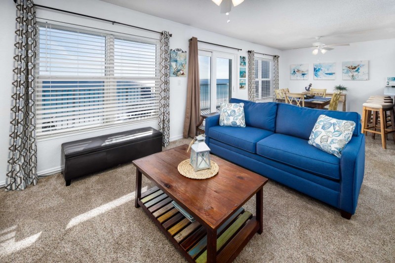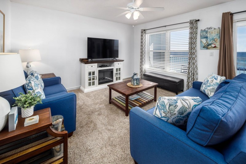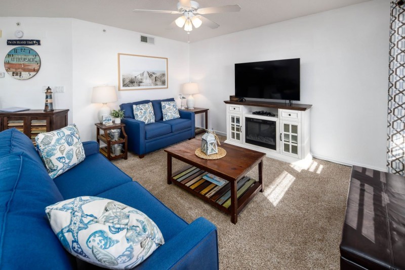 FREE PARKING AND FREE WIFI!!! As with most of our two bedroom two bathroom units there is a full kitchen that contains all major equipment, Keurig coffee maker, a washer and dryer, and an awesome beachside balcony. This unit stands out with its southern living décor and sleeping space for up to six guests, making it possible for the entire family to enjoy one another. The master bedroom features king size bed and private bathroom. Your guest will sleep comfortably in queen bed in the second bedroom with access to the guest bathroom.