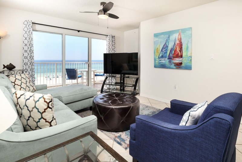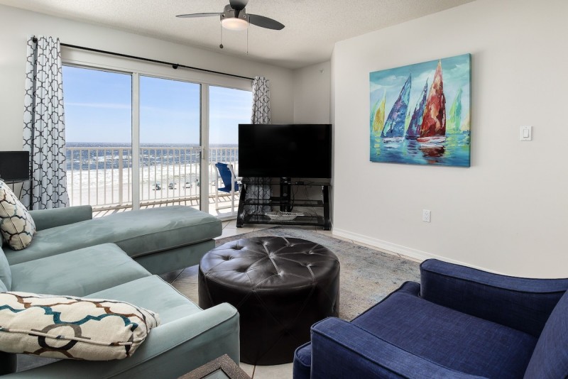 FREE PARKING AND FREE WIFI!!! THIS UNIT HAS A SATURDAY TO SATURDAY REQUIREMENT DURING PEAK SEASON! This two-bedroom/two-bath unit is artfully decorated with the finest furnishings and beautifully bright colors! The condo is perfect for a couple's retreat. The extra bunk room features twin size bunk beds and our little guests absolutely love this feature. The spacious master bedroom is beach front with entry to the private balcony. Another entry is from the living room area. The beauty of the emerald coast can be admired from the dining and kitchen areas as well. The kitchen is fully equipped so meal prep is made easy. For your laundry needs a washer and dryer can be found in this beach front condo as well. Unit has a 58 inch SMART Flat screen television. A festive vacation awaits you both inside and out. Gulf Dunes Resort is just a Few Minutes from Downtown Destin. You will be within walking distance of several Restaurants, and souvenir shops. On one side of the condo, you will have the Beach Lover's Paradise, and on the other, you will experience the convenience of local everything. Grocery stores, and specialty shops are only minutes away in Fort Walton Beach. The Fishing Pier is within walking distance, as is the famous Crab Trap and Gulfarium Complex. Of course, you could enjoy the beautiful drive to Destin to shop the Outlet Malls, stroll the Fishing Harbors, thrill the family at several theme parks, and choose from endless Dockside Restaurants for the family. This Beach Front Property is accented with Tennis Courts, a Private Gym, two Seasonally Heated Pools, and Protected Natural Dunes. There is 426 feet of Gulf Front Privacy, two private dune walkovers with showers, and relaxing lush tropical landscaping.Though Destin and its attractions are only a short drive away, this stretch of Powder White Beach is much more secluded. Okaloosa Island is conveniently located 1 mile from the Convention Center, 1 mile from downtown Fort Walton, and only 6 gorgeous from Destin.
