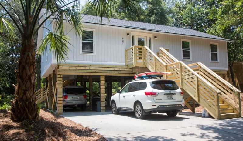 Awesome 3 Bed 2 Bath Folly Beach Vacation Rental - Pets Considered - sleeps 8 in bedrooms (master with king, bedroom 2 with queen, bedroom 3 with two bunk beds) with additional spots for 2 people to hit the couch/futon in the living room space. This place is brand new to the rental market so YES, it is available and the prices are a GREAT DEAL. This home just got done being remodeled and it turned out AMAZING, the vibe is so fresh and clean. The remodel includes major upgrades to flooring, new kitchen, new bathrooms, paint & landscape as well all new furnishings. The home is available for rent starting July 1st for 3-night minimums. It is a short 5-minute walk to the beach and also an easy 15-minute walk to Center St on Folly Beach which is where all the shops and restaurants are. Another great thing about this home is that it is only 2 blocks away from a nice park that has tennis courts, a dog park and an awesome playground for kids. Please note this house has Smart, Roku, TV's that you can sink your Netflix or other accounts to and good internet speed but DOES NOT have cable.