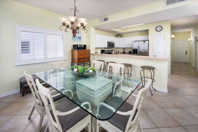 The sleeping arrangements in this unit are as follows: master bedroom - 1 king bed, 2nd bedroom - 1 king bed, 3rd bedroom – 1 queen bed. Sleeper sofa in the living room. This unit sleeps 8.