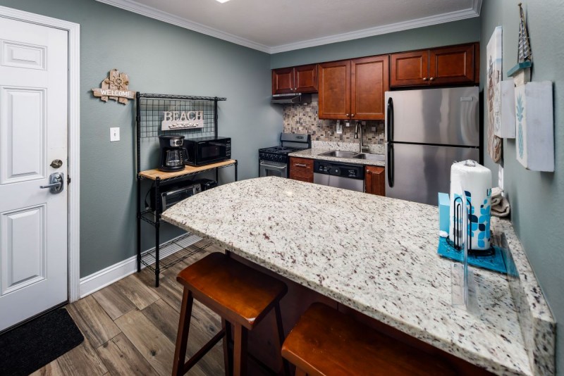 Welcome to Islander 503! This beautifully decorated, coastal themed studio is perfect for a pair of 2 or a group of 4! Enter into the full service kitchen with stainless steel appliances and bar seating. Make your way past the full updated bathroom until you reach those gorgeous gulf views! The living area contains a queen size bed, pull out sleeper sofa couch, and a dining table to enjoy your meals with a view! There is a mounted flat screen TV for all your viewing pleasure and a PRIVATE beachfront balcony. Enjoy your morning coffee out on the balcony or sit back, relax, and watch the beautiful Emerald Coast sunsets. Experience the perfect beach getaway at Islander Beach Resort 503!