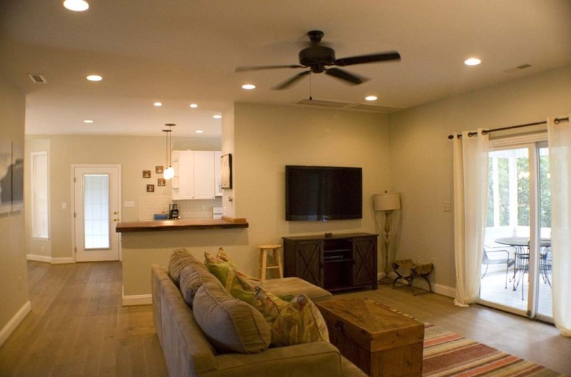 Only a 20 Minute Drive from Historic Downtown Charleston this Summer Weekly Rental home "The Big Chill" is a Modern Construction home with ICE COLD Central Air and has 3 BIG bedrooms with 3 & 1/2 baths and sleeps 10, the Master is actually a suite with separate living space from the bed area & HUGE Master Bath, huge private back yard, outdoor bar, lots of deck space, wrap around front porch, back screen porch, well appointed kitchen with barstool areas, 8 person dining space, plenty of off-street parking & this home is WALKING DISTANCE to everything Folly Beach has to offer. The beach is only a short walk away with a Public Beach Access nearby & there are multiple Golf Cart rental companies so you can easily get a cart for the week and drive right to the access in less than a minute which has special Golf Cart parking spots. Even though this home is not beach front I can't stress enough how nice it is to be able to walk to the Center Street area of Folly Beach where all the Shops, Restaurants, Fishing Pier, River Park & Bars are located. Let me just tell you, what a lot of people don't know about Folly is that it is a really long Island (7 miles long) and that all the fun stuff other than the beach are all at Center Street so a lot of times you might rent a Front Beach home that's awesome for the beach but you have to drive to get anywhere else on the Island and parking in Downtown Folly is CRAZY in the summer so being able to walk everywhere is really something to consider!