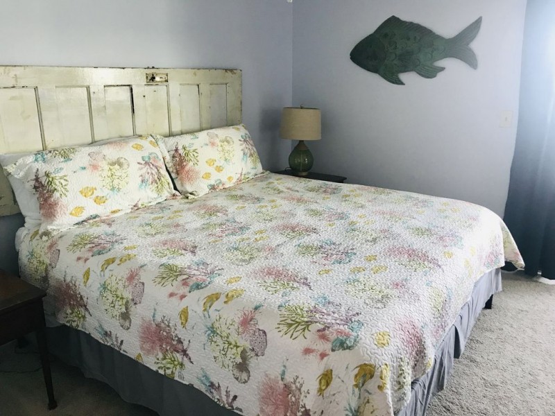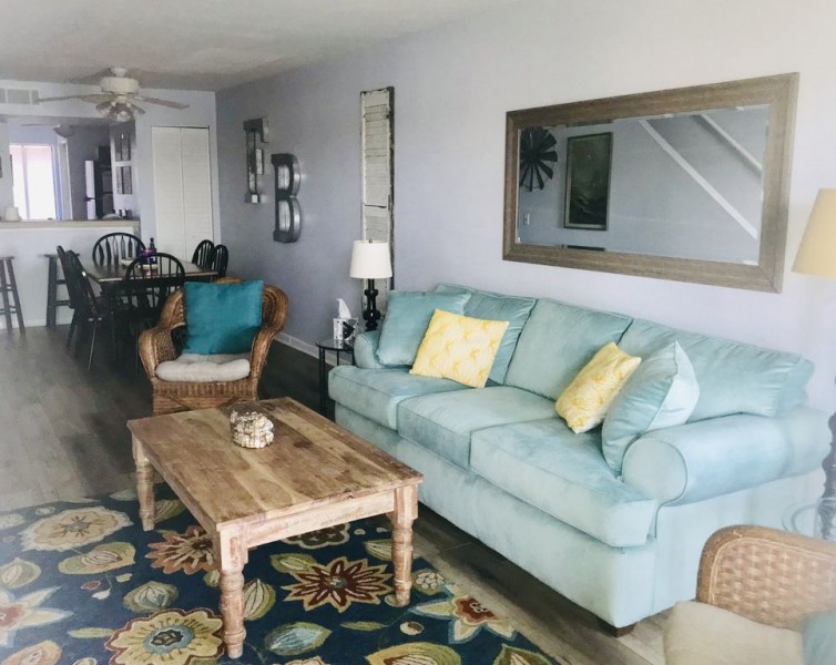 The Unit is located on the river side of the island with SPECTACULAR river views and is right across from the pool. Inside you will find a full kitchen well stocked with cookware and basics like coffee filters, tinfoil, some spices and all the kitchen essentials needed to cook most types of meals. The living room has a big, comfy couch and 2 chairs with a large flat screen tv with good cable and wifi. The farmhouse dining room table seats 6, and there is a table outside on the patio to enjoy a meal or coffee while watching the dolphin play. There is a convenient half bath downstairs and the sofa pulls out to a full size bed. There is a large screened porch downstairs with lovely views of the river and amazing sunsets.