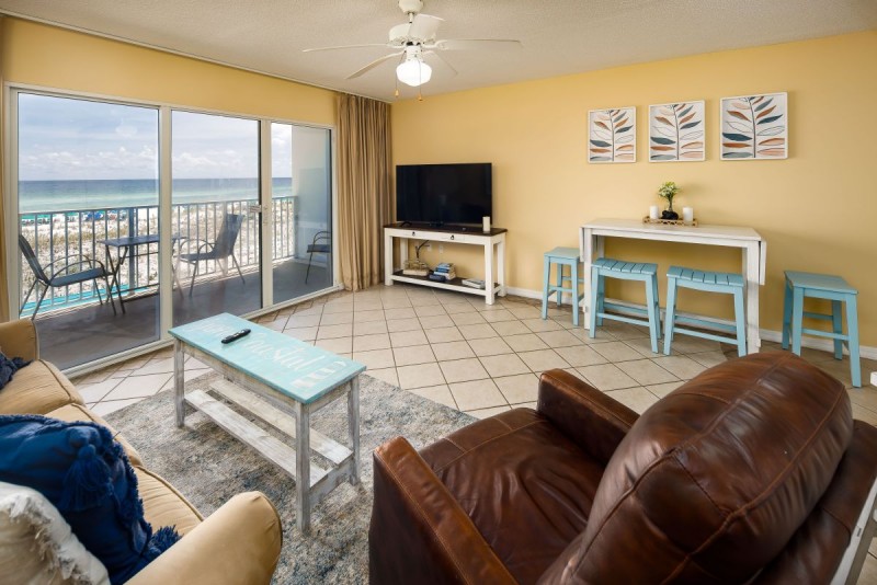 FREE PARKING AND FREE WIFI!!! This One bedroom condo is a delightful little gem, it has a large master bedroom with access to the dual entry 1 and a half bath, there is a stackable washer an dryer located in the condo as well. The cozy living area has plenty of seating for everyone in your party, the fully stocked kitchen is a perfect set up for those that enjoy cooking and the private balcony overlooking the emerald waters of the Gulf of Mexico provides a view that cannot be matched. If you are looking for relaxation this is the condo for you.