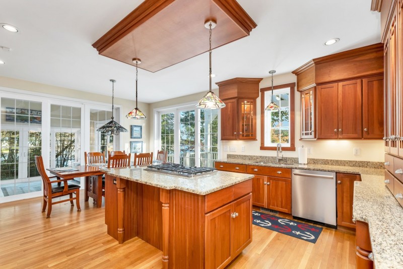 Your luxury Winnipesaukee vacation awaits. The minute you step out of your car and onto this property, you will instantly feel relaxed and at home. The custom 3-story home was designed and constructed by a national award-winning builder and offers panoramic views of the lake and mountains. The manicured grounds offer a sand beach, large U-shaped dock (will hold up to three 24' boats), patio and decks. Inside, the living room gives you 2-story windows to take in the stunning views. This room also has a fireplace with a large-screen TV above (sorry, the fireplace is off limits). Next to the living room is the pool table room, complete with pub tables to relax and watch the game while awaiting your turn. The kitchen is amazing - you'll want to be the chef of your wood cabinets, granite counter tops, prep sink, the list goes on and on. Off the kitchen is the sun room where you can relax with your morning coffee or curl up and finally get to that book all your friends are talking about but you haven't found the time to read. The master bedroom is on the first floor and has stunning views through the slider accessing the private deck, a beautiful bath with shower stall and jetted tub, and a TV for catching up on the news before making your plans for the day. The first floor also has a comfy TV room. Up one flight you will find a lovely sitting area overlooking the living room and through the glass to the stunning views. In addition, there is a bedroom with a king bed and a bedroom with a queen bed (this bedroom has gorgeous lake views). These two bedrooms share a bath with a separate shower stall and jetted tub. There is also a bedroom with a queen bed and its own private bath and a bedroom with a queen bed and a relaxing couch for lounging with an additional room off it with 2 twin beds. There is yet another bathroom with a shower stall on this floor. The last bedroom on this floor has a queen bed and beautiful lake views. Just when you think it couldn't possibly get any better - go up to the third floor! There you will find a kitchenette AND another bedroom with 4 twin beds, 1 double bed and a bath with jetted tub and shower stall. The furnishings and decor in this home are impeccable and loaded with lake charm. Gather your family and friends - this will truly be your vacation of a lifetime