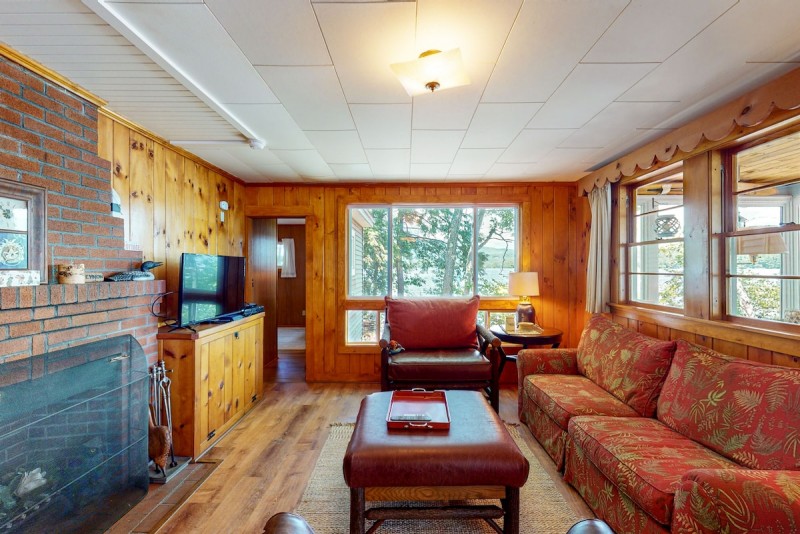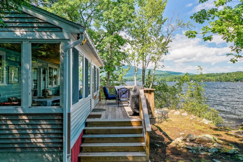 Great private spot with outstanding views 180 degrees around! Swim from the L-shaped dock or small swimming area. Row boat. Peace and quiet. Adorable cottage with wonderful, large screen room looking out to the water and fantastic views beyond. Have the perfect Winnipesaukee cottage experience here. Cable t.v. Dock for up to a 21' boat (owner keeps his boat on one side of the dock). Absolutely no outside fires permitted. If you would like to rent linens, the fee for this property is $75 for sheets and $12 per person for towels. If you would like to have the beds made for you, the fee is $8 per bed.