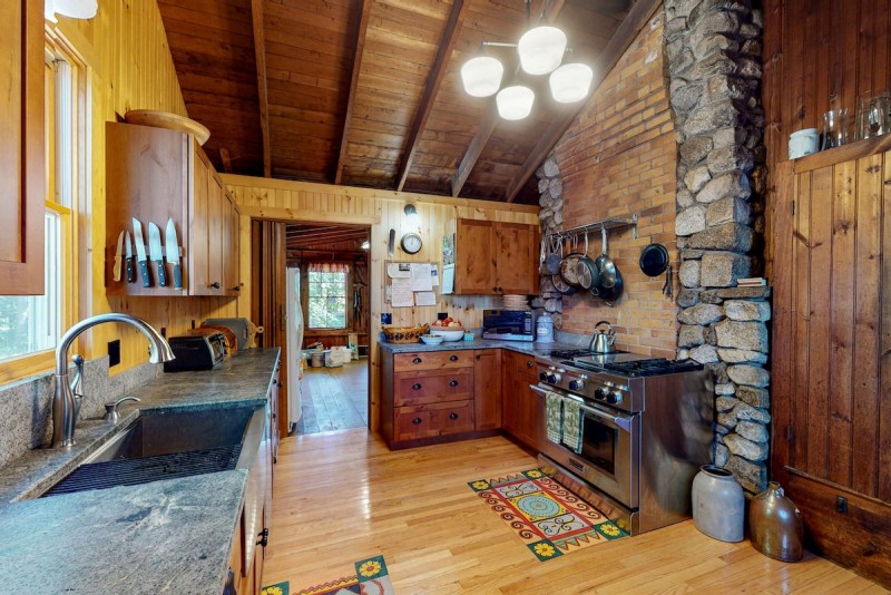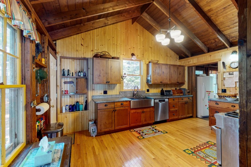Classic "On Golden Pond" lakehouse with 350' frontage and views from East-South-West and a beautiful private sand beach! This 1930's era home rests on a point of land and has a fabulous screen porch for relaxing, lovely stone fireplace (2nd floor fireplace is off limits and not to be used), boathouse (owner uses one slip and tenant gets the other for up to a 25' boat in the boathouse) and swim raft plus inflatable bounce raft. Explore the shoreline or catch dinner from the canoe and kayak. Although this is a classic camp, it still offers many "creature comforts" including a recently renovated kitchen! Wireless internet! There is no t.v. at the property. The boathouse offers a large game room upstairs with ping-pong table, darts and other rainy day activities. There is a second house on this property which will not be used when there are tenants. Water source to house is a well but owner recommends using bottled water. If you would like to rent linens, the fee for this property is $105 for sheets and $12 per person for towels. If you would like to have the beds made for you, the fee is $8 per bed.