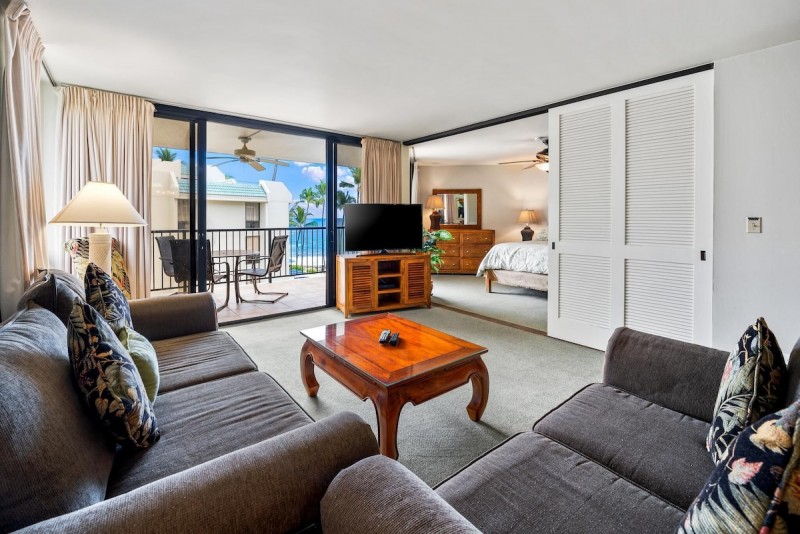 Kona by the Sea is an oceanfront property. This spacious suite is a 2 bedroom - 2 bath well-lit condo that has seen many recent improvements, including upgraded furnishings. Enjoy a great view of the ocean and pool. An elevator makes for easy access from the ground floor. Amenities include high speed wifi, perfect for video chatting or zoom meetings for those who work remotely while enjoying being in Hawaii. Kona by the Sea has 2 pools. One is a saltwater pool situated right on the waterfront. Additional on-site amenities include a spa and barbeque area.