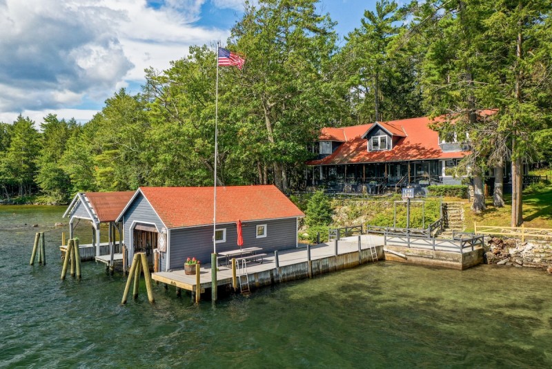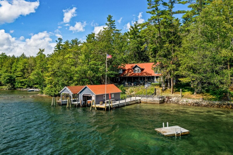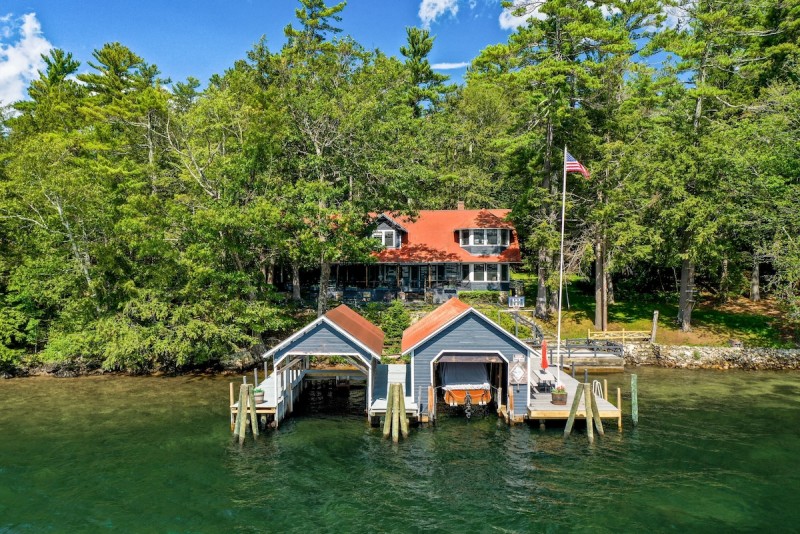 Treat yourself to a private getaway for a week on Lake Winnipesaukee at this rustic waterfront lodge. Relax in seclusion on the expansive dock while enjoying over 500 feet of lake frontage and some of the best views of the Belknap and Gunstock mountains. While you take in the views and the sun with a cold drink, the kids can play basketball right on the dock! Bring your boat (up to 25 feet in length) to the nearby public launch or rent from the local marina and tie up under the covered boathouse. There is also some great fishing right off the dock. The front of the house overlooks the lake with a flagstone patio with stainless gas grill and large picnic table. Entry into the sand-bottom waterfront is from the ladder on the dock where you can take a swim out to the raft while the kids snorkel for clams at the bottom of the lake. Located centrally on the lake, it is an easy boat ride to Center Harbor, Meredith or Weirs Beach where you can enjoy dining at one of the Lakes Region's fine lakeside restaurants.