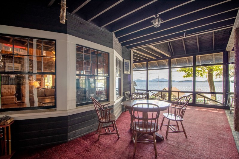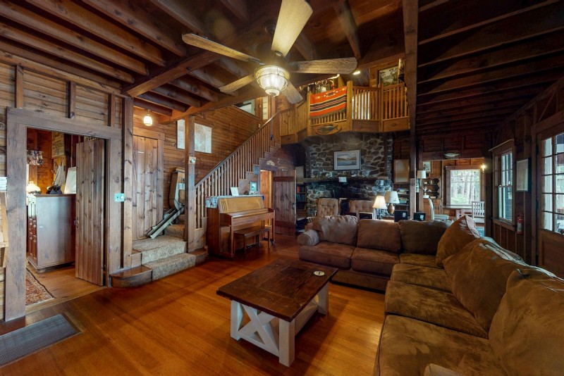 Enter the house through a huge screened porch perfect for your morning coffee, lunch out of the sun, or just relaxing and conversing while enjoying the lake view and nature around you. The living room's grand open ceiling to the second floor, large field stone fireplace and traditional lodge woodwork harken back to the relaxed living of days gone by. There is a half bathroom on the main level next to the first floor bedroom that is furnished with bunk beds. The rental comes complete with TV and Wi-Fi and a private office for any necessary business while you are away. Finishing off the first floor is an eat-in kitchen fully equipped with both large and small appliances. Lastly, the formal dining room is a great place to recant tales from the day as you enjoy dinner and keep an eye out for the Mount Washington that cruises by around dusk. After dinner, make sure to make your way down to the dock for some amazing sunsets.