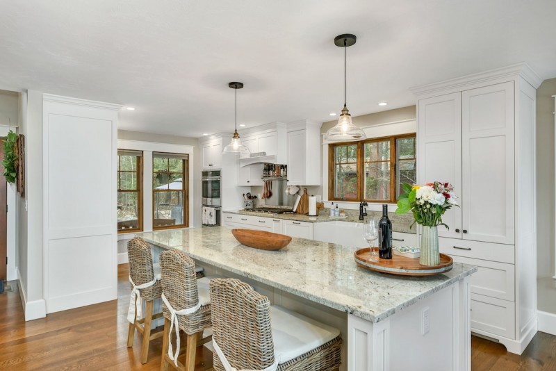 This home is the builder’s own and is nothing short of a labor of love, completely renovated inside and out with the finest quality materials and finishes, as well as Central Air Conditioning. The main floor offers an open concept with a generous chef’s kitchen, living room and dining area, all with gorgeous lake views. The primary bedroom is also on the first floor with a beautiful en-suite bathroom. There is a screened sunroom which can be accessed from the dining room or from the primary bedroom. There is also a half bath on the first floor. Upstairs, there is an office nook in case you need to take care of anything while you’re away. There are also three additional bedrooms and a full bathroom (bed sizes are listed in the “room description” section below). Sorry, the fireplace is off-limits and is not available for guest use.