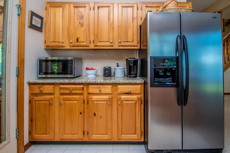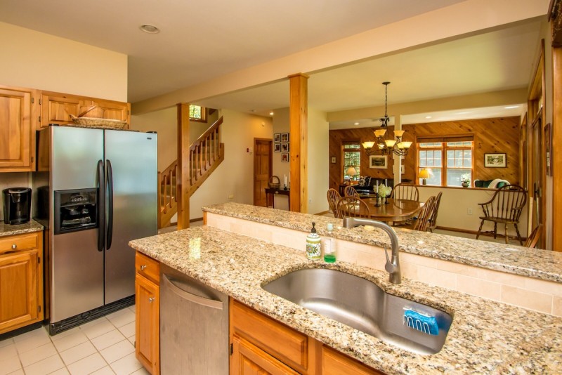 This home sleeps 8 people comfortably with 3 bedrooms and 2.5 baths. All the bedrooms are on the second floor. The master bedroom has a queen bed with attached full bath. The second bedroom has a queen bed and the third bedroom has a pyramid bunkbed (a twin bed over a full). There is also a full bath off the hallway on this floor. The main level features an open kitchen, dining area and living room as well as peaceful sunroom to relax after a fun-filled day on the Lake. There is a queen sleep-sofa in the living room on the main level for additional sleeping. Please note, the fireplace in the living room is not available for guest use.