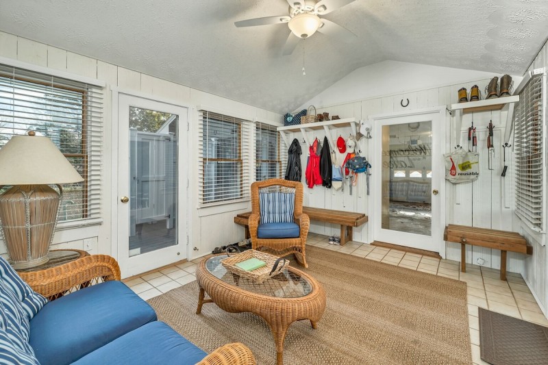 The lower level offers plenty of space for relaxing and recreation. Enjoy a cold beverage from the wet bar while playing a friendly game of pool. Or just curl up and watch a movie on the flat screen with the group after dark. From this level, there is access to the waterfront without having to navigate any stairs.