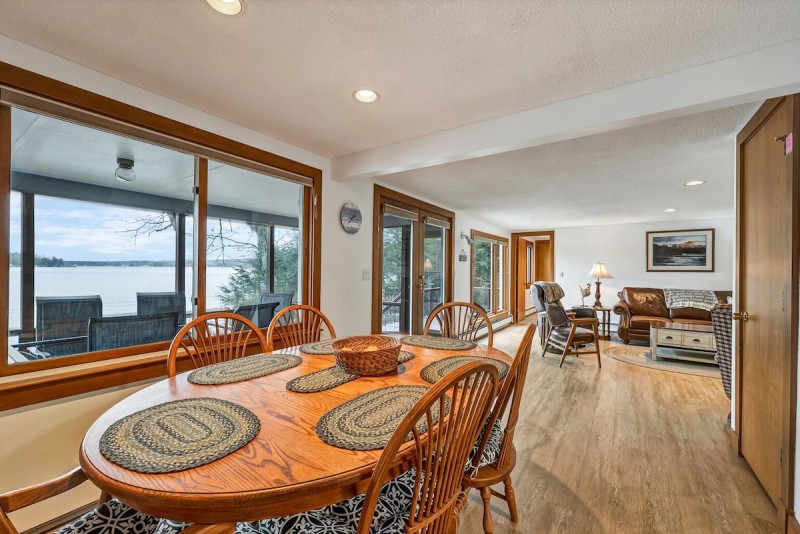 The home is set on a private lot at the water's edge with screened porch and deck. There are five separate sleeping areas total, two on the main floor and a den with a sleeper sofa. There are two more bedrooms on the second floor. This home can sleep up to 10 people comfortably. Enjoy preparing meals with your group or relax with friends and family after a hot summer day in the open concept living area overlooking the lake.