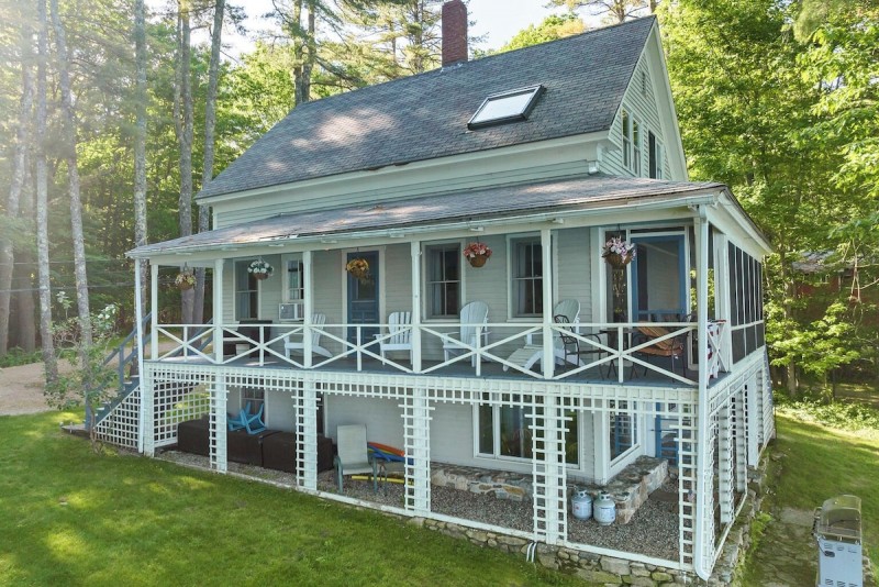 The main house is a late 1800s farmhouse. On the lower level, there is a large dining room, an eat-in kitchen with stunning views, a half bath, and walk out access to the lake. On the main level, there is a large living room with glass sliders which open to a screened in porch with wonderful lake views. There is also one bedroom with a full-size bed. The main bathroom is located on this level with a claw foot tub and separate shower. On the upper level, there are 4 bedrooms, two with queen-size beds and two with full-size beds. There are window unit air conditioners in each bedroom as well as in the living room.
