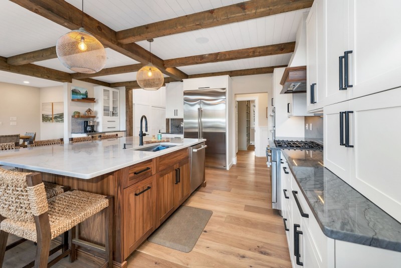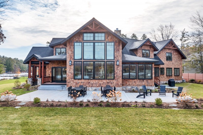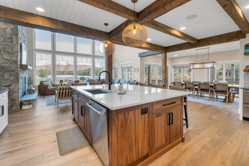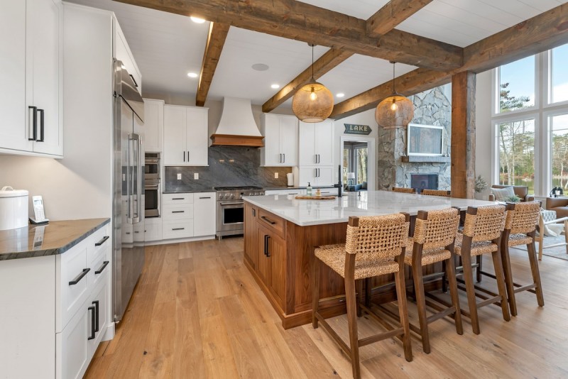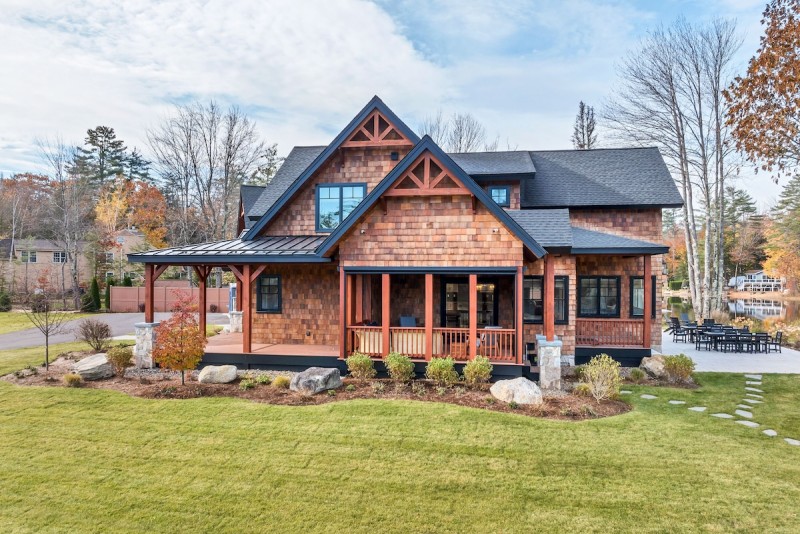 Welcome to Loon’s Landing, an exquisite home that was thoughtfully designed for family retreats. The charm of the Adirondack-style exterior seamlessly blends with modern interior finishes. From the moment you walk in the front door and gaze through the wall of windows looking out at the lake, you feel welcomed and invited to relax.