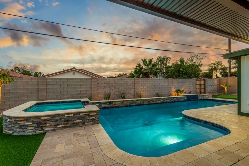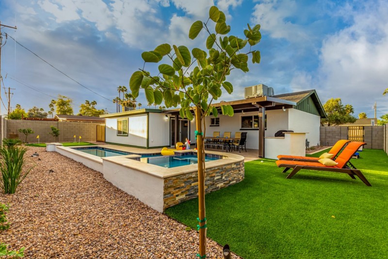 Heated Pool/Spa home in perfect Tempe location on the border of Scottsdale. Super home in a super neighborhood. Experience this 3 bedroom home with 2 baths and a new upcoming resort pool and spa in an oasis of a backyard. Did not want to wait to get this on the market so you could be the first to enjoy the new backyard addition. Step inside this home away from home into a welcoming open concept living room and kitchen. The kitchen is fully equipped with a gorgeous breakfast bar that is perfect for entertaining or food prep also. Just outside the kitchen area is the super comfy family room and dining room. Seating for 8 and set up for the whole family. Enjoy a movie on the big screen tv while lounging on the super sized sectional. Also attached is a game room with fun for the family in mind. See who is the ping pong or darts champ of the trip. A full sized laundry room completes this section of the home. Super fast wifi and all TV's with cable and streaming capabilities.