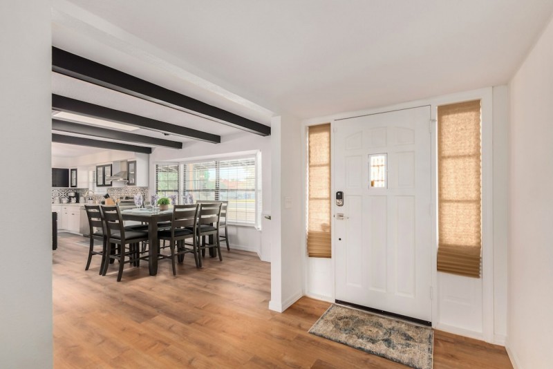 Super Large and Super Luxurious home for the whole family. Full and beautifully remodeled. Park like, oasis of a backyard with a heated pool. Super place to make memories. Step into the open concept kitchen, dining room, family room and game room. Everyone has a place to gather here in one rental spot for some togetherness. Sit at the breakfast bar and visit during meal prep in the kitchen that is stocked with everything and then some. This kitchen has a air fryer, griddle, crockpot, blender and more. Large working space in the kitchen, with 8 person dining right next door with a cozy fireplace. The family room has a super comfy sectional sofa a super sized 75" tv and a game area for family fun. The bedrooms are split and on either side of the home. The Master has a TV, King Bed and En-Suite bath with a walk in shower. The 2nd bedroom is just down the hall and features 2 queens and television and office work space.