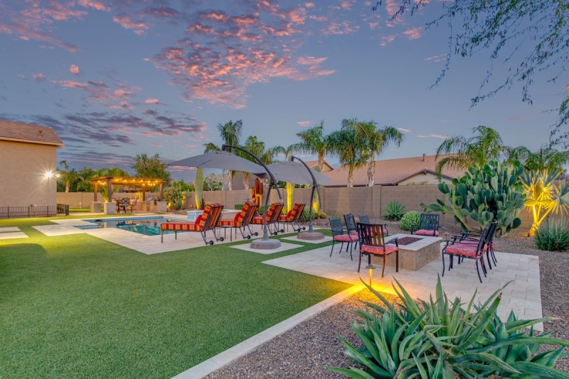 This backyard oasis so spectacular it is hard to describe. The immense heated lap pool is the centerpiece of the backyard. With a raised spa that is large enough to accommodate 8. To the west there is a firepit area, a luxury loungers for soaking in the Arizona sun. On the east side of the yard is a pergola with outdoor built in BBQ, an egg BBQ and smoker and is the perfect place to dine alfresco. Further east is a private putting green designed for hours of enjoyment. Under-cover as you first step outside is a full outdoor living room and TV so you won't miss any of the action.