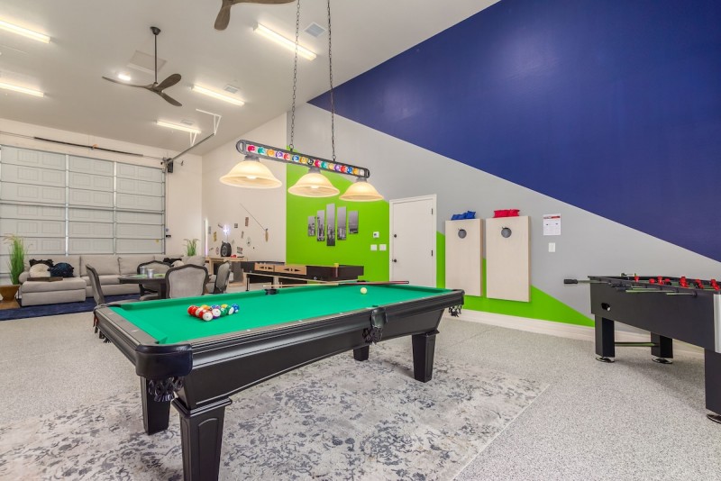 Step inside to an open concept dining, living and kitchen. The dining room is private and just off the kitchen. There is a wine fridge, giant walk in pantry and butlers area off the dining room for ease in serving. The kitchen is equipped with high end appliances, gorgeous granite counters and a massive island and breakfast bar, perfect for entertaining. The super spacious living room has comfy seating for everyone and has a TV you can see from anywhere in the open concept. Just off the entrance and living room is an office for working from home or just having a place to set up that laptop. Down the hall toward the rear of the house and split from the other bedrooms is the Master. King bed, reading area, tv and so much room to spread out. Super private with views to the mountains and resort backyard. The master bath has an enormous countertop with double sinks, a walk in shower and closet and a large soaking tub. There is also a private toilet room. Down the hall toward the front of the house are three other large bedrooms. All with walk in closets, queen beds and TV's for a private retreat for all. There is a large shared bath with double sinks, a tub shower combo and the vanity is separate so everyone can get ready. A third full bath is located near the butlers area with access to the backyard and has a walk in shower. There is a full, laundry room and super fast wifi throughout the home.