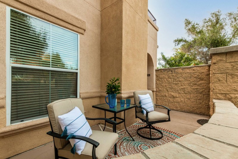 Amazing 2 bedroom condo in a great area of Surprise. 30 night minimum. The coveted ground floor everyone is looking for. This home away from home lives large and has a two car garage to boot. Step inside through the garage or private courtyard and you will instantly be welcomed by the contemporary decor and open concept living room, dining room and kitchen. Reclining furniture throughout the living room just in front of the cozy fireplace and TV. Dine in style on the dining room table and chairs for 4 or site up to the breakfast bar for a quick cup of java or to chat during meal prep. The kitchen is spacious with lots of counter space, cabinets and a standalone coffee bar. It has absolutely everything and more than you will need to cook, bake or prepare a BBQ meal. Down the hall you will find the master bedroom with a king sized bed, private courtyard, large tv and spa like bath with a walk in shower, double sinks and a walk in closet. Bedroom 2 has a queen size Murphy bed, that can be put up for extra space in the 2nd use for the space and office with 2 separate workspaces. This bedroom also has a large hall bath with tub and shower combo. There is a full sized laundry room, 2 car tandem garage and superfast Wi-Fi.