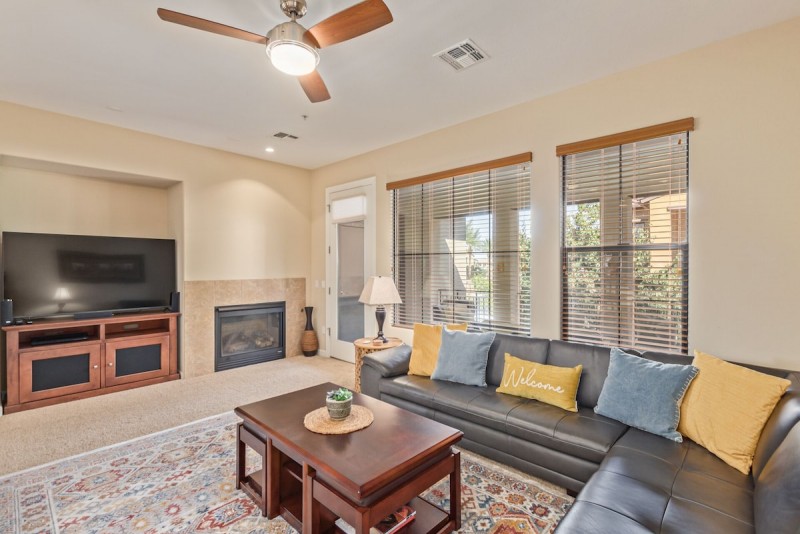Don't miss this amazing townhouse in the highly desirable Fulton Ranch neighborhood of Serenity Shores. This 30 night minimum gated community offers lush landscaping, waterways, walking trails, a HEATED pool and spa and a gym. The townhouse itself is tastefully appointed and is 2nd floor living with no one above you. Step inside and you will be met with a staircase taking you up to one story living area. An open concept kitchen dining and living room await. Anchored by a large smartv and fireplace. Comfy sectional seating for everyone is available to catch a movie or a sporting event. The large breakfast bar provides extra seating for the kitchen and living area. The kitchen is spacious with everything you will need to make a meal in or prepare for a BBQ in the patio/balcony. The dining room seats 6 and is adjacent to the kitchen.