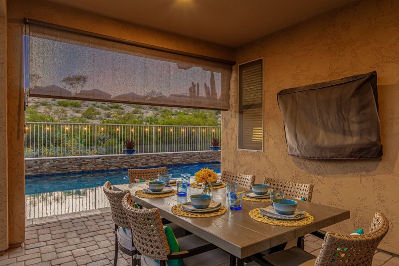 Splash. Thinking of booking October 15-April 15? The weather in Arizona can be quite volatile this time of year. There may be soaring heats over 100 degrees or temps that can drop below 50 degrees. This home is equipped with a heat pump, reel and cover. The heat pump that is responsible for heating the pool is at full efficiency if the weather stays above 50 degrees allowing the pool to get to a comfortable swimming temp of 85 degrees. Should you want the pool heated, please book with that option now. As your reservation date approaches, should you find the temps heading below 50 degrees you can make a final decision if you wish the pool to be heated based on weather conditions. We can refund the pool heat fees should you be concerned about not being able to enjoy this amenity as intended.
