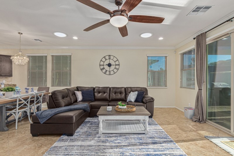 Light and Bright Home in the newest part of Sun City, and just adjacent to northern Peoria. Lake Pleasant Recreation Area only 15 minutes away. Shopping, Sports, and a private sparkling heated pool with dramatic desert views behind.