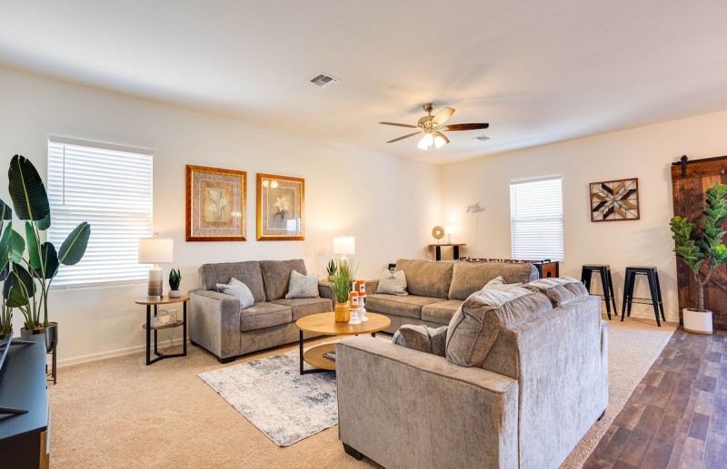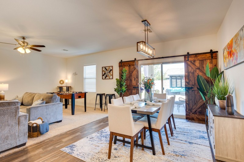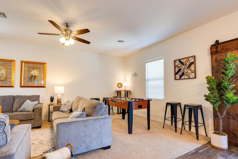 We welcome you to one of the best vacation getaways in Maricopa. Step inside to an immense open concept one-story home. The kitchen, dining room and family room are all one big inviting space. The Family room has a giant tv and foosball table with plenty of comfy seating for everyone to enjoy.