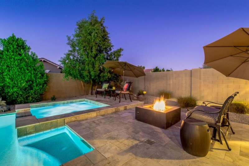 The backyard oasis is where all your living will be done. Dining, Fire Pit, Large Salt Water Pool and Spa. It is North facing and very private for you when barbequing, watching the game on your outdoor flat screen, sunbathing or just relaxing with your favorite bottle of wine. If you like grapefruit, lemons, oranges or cumquats, you can enjoy them both on the property when in harvest season. This place has a calming vibe and is a relaxing luxury vacation rental home property.