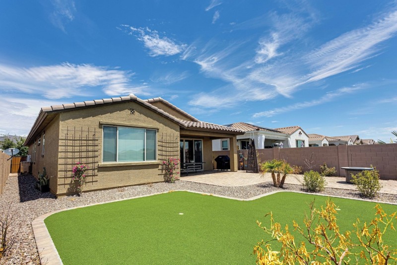 This stunning home in Peralta Canyon is 1 year new and has all new furniture for added comfort. 90 Night Minimum! open sweeping views of a natural wash with the coveted South facing backyard. No one behind you for impressive privacy making your Gold Canyon experience that much better. From the front of the home look north to the Superstation Mountains as the home is sits just at the base. This 3 bedroom two bath home has an open floor plan with the master split from the other bedrooms. The master has a king bed and tv and views to the backyard. It is attached to a soothing spa like bath with double sinks, a garden tub and stand up walk in shower. The master closet is large and will fit everything you need. The second bedroom has a king bed with a large full bath just next door. It is located in the front of the home. Bedroom 3 has a queen bed for your comfort. The expansive living room, kitchen and dining room connects the bedrooms with lots of light and openness. The gourmet kitchen has an enormous island for cooking, dining and entertaining and the kitchen table that seats 8 comfortably is just off the kitchen. There is a large walk in pantry and lots of cabinet space. Just off the entry is a desk for working at home or just spot for your laptop while vacationing. The living room is comfy and has a large TV with Hululive cable streaming and seating for everyone. Open the large sliding doors from the living room and you instantly have indoor outdoor living. Patio covered dining for 6 and Weber professional gas BBQ accent the backyard. Step further to the fire pit area for enjoying the open skies and natural habitat with a cup of coffee in the morning or a glass of wine in the evenings. The home has a full indoor laundry room, soft water system and 2 car garage with additional driveway parking.