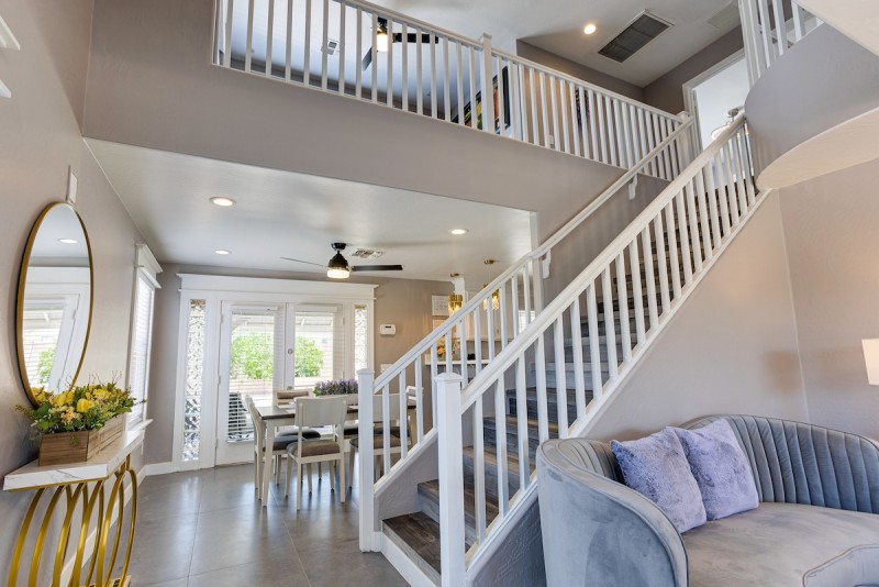 The bedrooms are all on the 2nd story with a lofted area with TV and super comfy queen sofa bed in the loft. The primary bedroom has a King bed, spacious bath and walk in closet and there are also 2 additional private bedrooms both with queen beds. This home is dog friendly, has a 2 car garage and indoor laundry room. The kitchen is updated and can accommodate everyone for a meal or for family game night.
