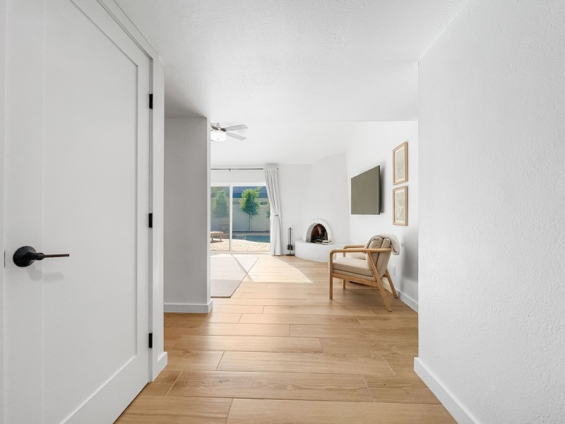 This exquisite home, featuring 3 bedrooms and 2 baths, marries luxurious comfort with unparalleled style. As you enter, the open-plan design greets you, bathed in natural light that creates an inviting, serene atmosphere. The airy layout is perfect for relaxation and entertainment alike, welcoming you to embrace both tranquility and lively gatherings. Picture relaxing evenings in the expansive living room, where a crackling wood-burning fireplace invites warm conversations or solitary moments of calm. The dedicated workspace caters to those working remotely, offering an ideal sanctuary of productivity and peace.