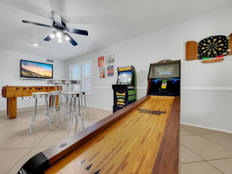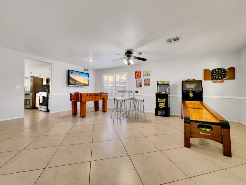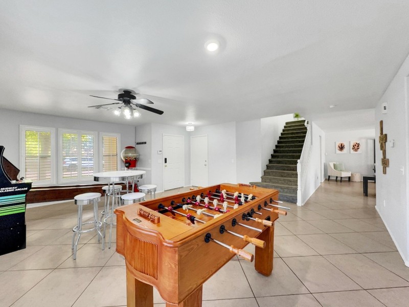 Step inside and be greeted by two spacious family rooms, one on each level, providing ample room for relaxation and entertainment. The game room featuring, a skee ball, arcade game, and foosball, is a highlight of this home, equipped with everything you need for hours of fun with loved ones.