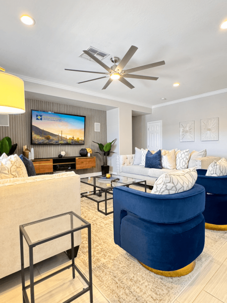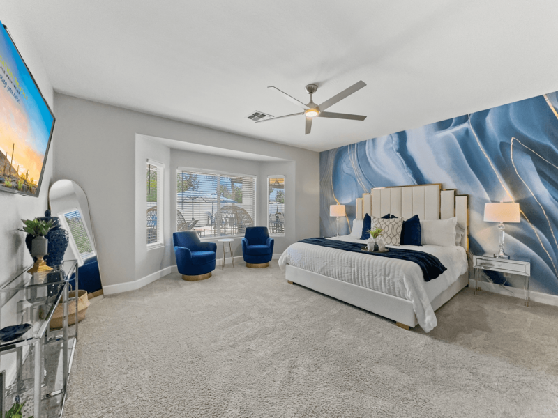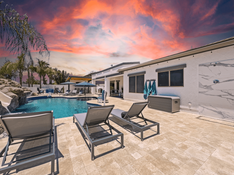 Are you looking for the perfect family getaway spot? Look no further than this professionally decorated and luxurious Azurite home in Queen Creek, Arizona. With plenty of space to sleep up to 12 people and a heated pool and waterslide your entire family will find relaxation and entertainment here. Enjoy the backyard oasis with lots of seating around the fire pit, television or BBQ while taking in the stunning open fenced views. If that's not enough, challenge each other to a ton of fun in the game room. End your evening with a cozy movie night in your own private family movie room! When it's time for some retail therapy, you'll find plenty of shopping, restaurants, and entertainment just down the street from this amazing vacation home. Come experience paradise defined - book today!