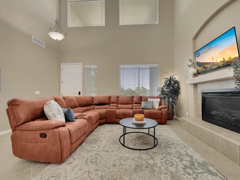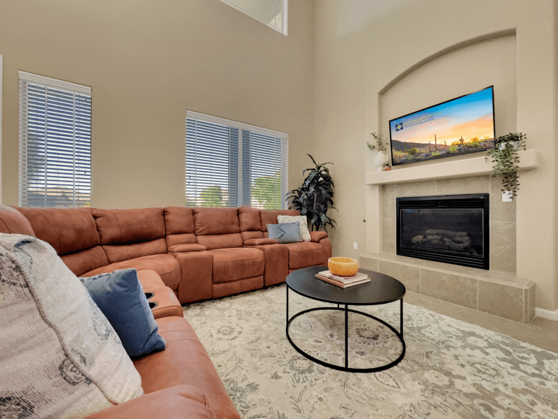 Accommodating up to 12 guests, Cline Maricopa features two lavish king bedrooms and two cozy queen bedrooms, ensuring everyone has a comfortable place to unwind. The home includes 2.5 bathrooms, providing ample facilities for your group.