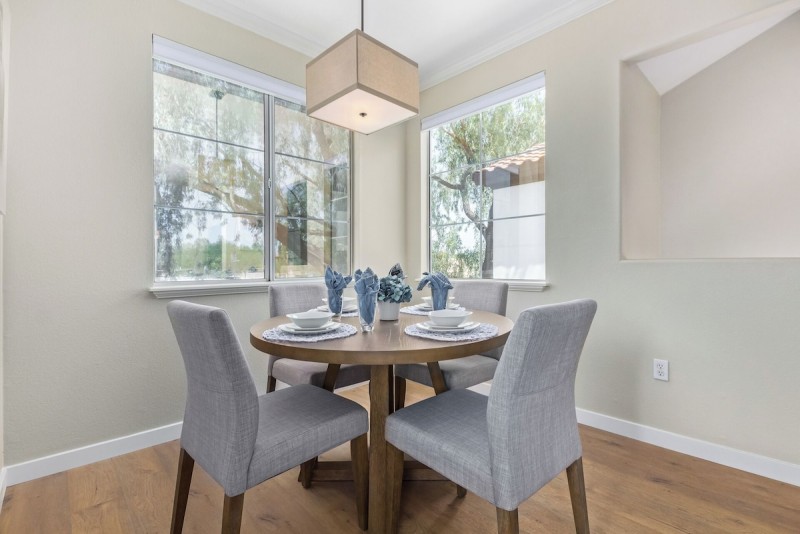 This light and bright end unit townhome is perfect for any time of year. Miller and Thomas roads, close to everything. Walking/Canal Trails right across the street. Bikes, Scooters and more available right on the corner. Gated Community entrance then into your own private direct access one car garage. This 2 story townhouse has all living on one floor after your assent from the garage. Remodeled with all new flooring, new paint, granite and more. Great room with a working fireplace and vaulted ceilings. A dining room connected to the open concept kitchen and great room. Step outside to your private patio and enjoy the foliage for drinks or coffee in the am. The 2 bedrooms are located just down the hall. The Master features a king sized bed with TV, workstation and en-suite tub/shower combination. It also has a large walk in closet. The 2nd bedroom has a queen bed and is just across from a lovely full hall bath with a walk in shower. Washer and Dryer are full sized and right upstairs with you for ease.