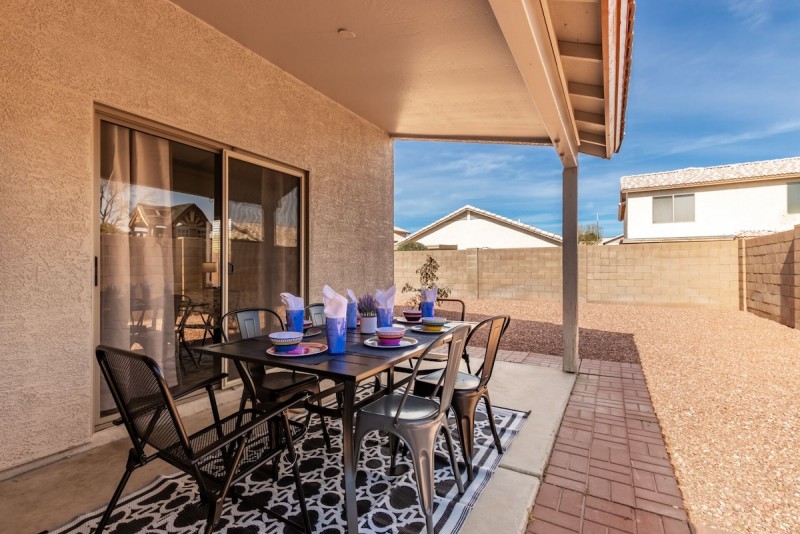 Take your vacation to the next level and stay in this 3 bedroom Arizona home! The primary bedroom is perfect for complete relaxation, with a king bed, plenty of closet space, a TV, and an attached bath with double sinks, soaker tub, walk-in shower and even a water closet. And the two additional bedrooms each have queen beds and their own closets - plus share access to the hall bathroom with tub/shower combo. Step outside onto the spacious patio for dining with friends or family at the 6-person table - don't forget to use the super gas grill for cooking up a delicious meal! And with fast wifi access, laundry room convenience and a two car reliable garage, you'll want for nothing during your stay. Dreaming of desert sunshine? Don't wait - book today!