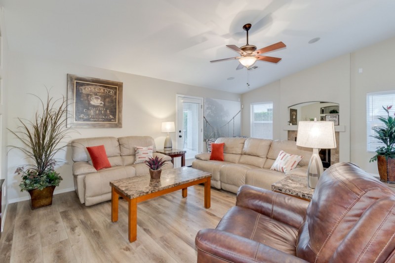 While all the bedrooms feature queen beds, each gives you a different feel. The master retreat features an en' suite complete with separate walk in shower, soaking tub, walk in closet and direct access to a private pool. The 2 additional bedrooms also feature comfortable queen sized beds while the shared bath is conveniently located between the bedrooms. A washer and dryer are provided for your use and the backyard oasis is great for entertaining or private enjoyment.