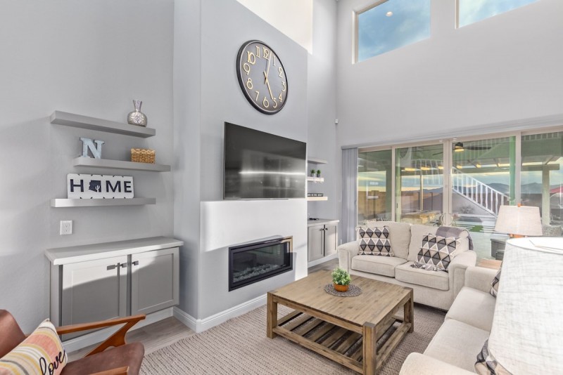 The outdoor space is a true highlight, boasting a private heated pool with a jacuzzi, perfect for soaking up the Arizona sun or enjoying a relaxing evening under the stars. Gather around the fire pit or enjoy a barbecue on the grill while taking in the beautiful pool view.